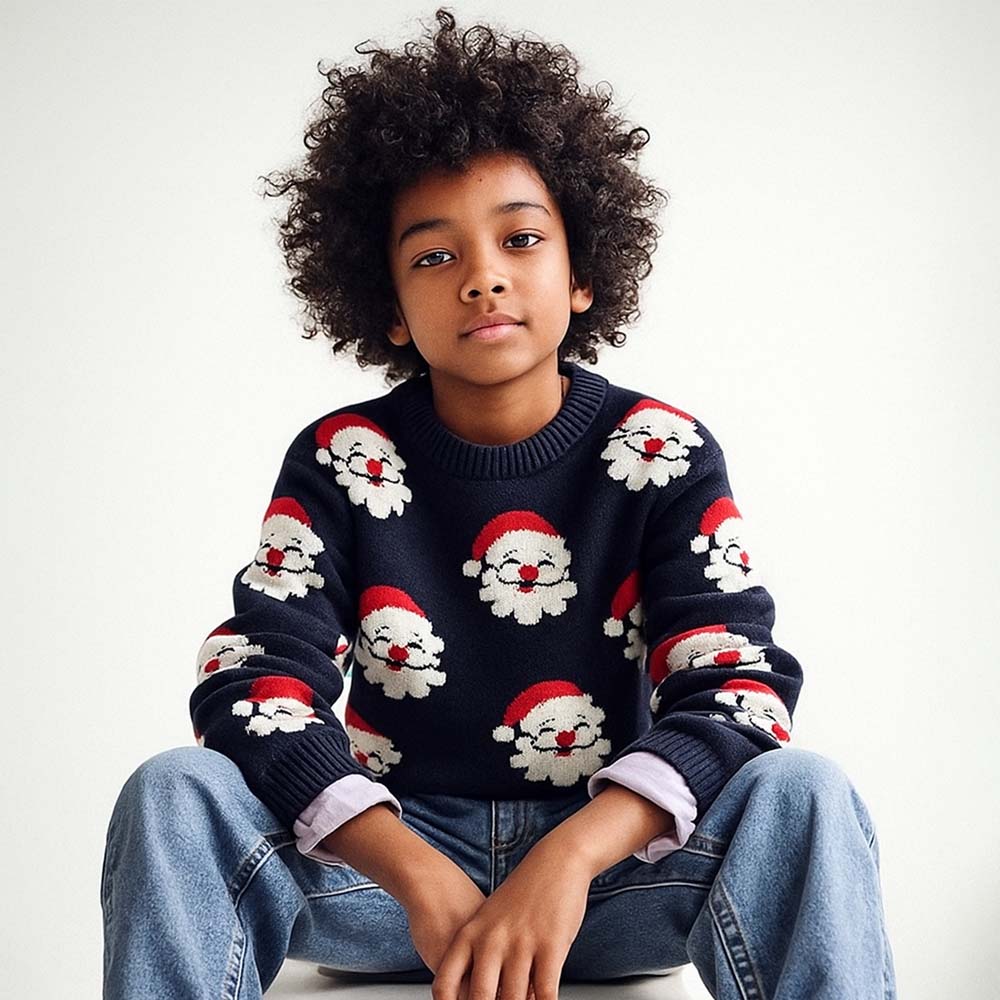 1. Design: This beautifully designed Christmas Cardigan and Sweater is a perfect choice for your little ones if he/she is a Christmas Enthusiast. This classic Navy , cute christmas Designed Sweatshirt is a perfect buy during Winters beaming in the mood and vibe of Christmas . The beautiful designed christmas themed sweater with multi Santa Faces is just a perfect mood turner for christmas and will look the cutest on any child wearing it.