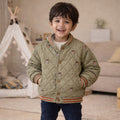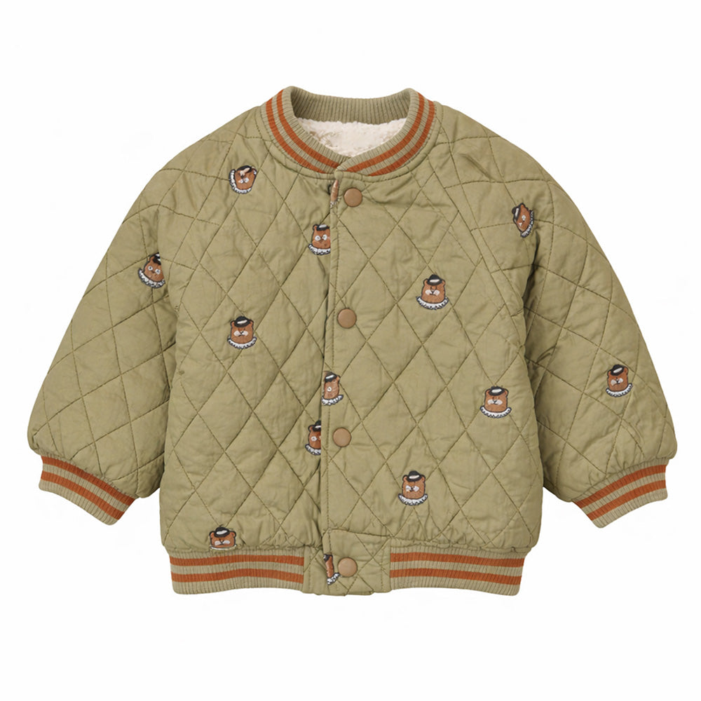Olive Brown Tiny Bear Quilted Sherpa Winter Jacket for Kids