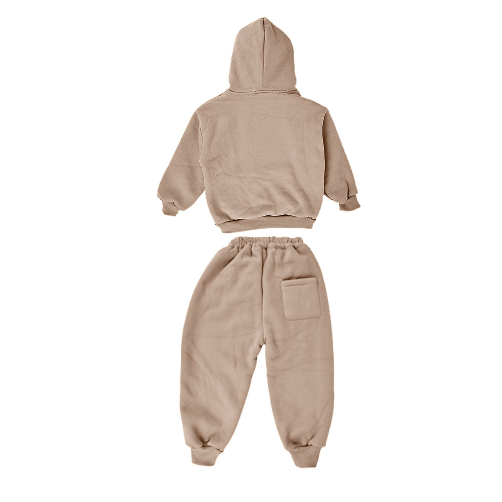 Olive Green Brown Puffer Jacket And Matching Track Suit 3 Pcs Winterwear Set For Toddlers And Kids