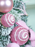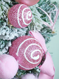 Pastel pink & White Swirl artificial Bushy Christmas Wreath for wall, Door and Tree Christmas Décor,18 inches