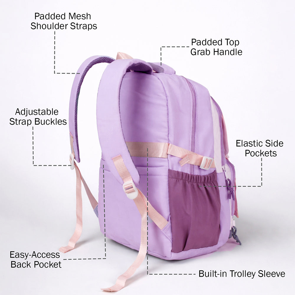 5. Attractive Color Combination: The pastel purple paired with soft pink accents gives this backpack a trendy, calming, and school-appropriate look that stands out effortlessly.