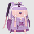 Pastel Purple & Pink Color-Block with Character Pouch School Backpack for Kids