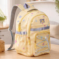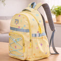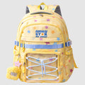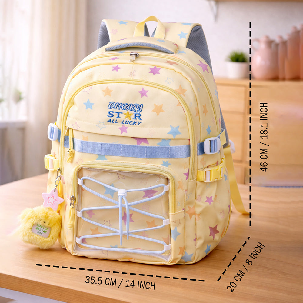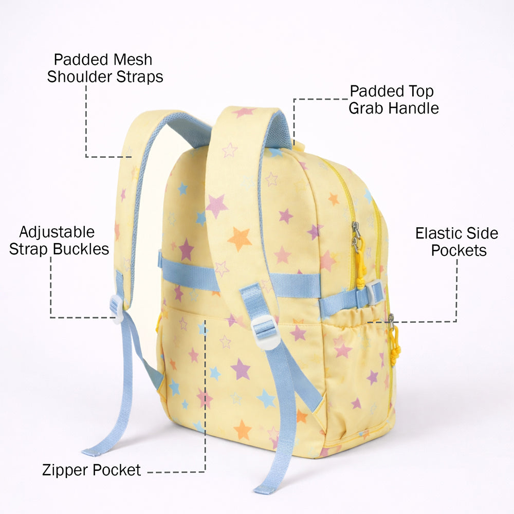 Pastel Yellow Star Print with Front Bungee Pocket School Backpack with Detachable Plush Star Keychain & Star Pins for Kids
