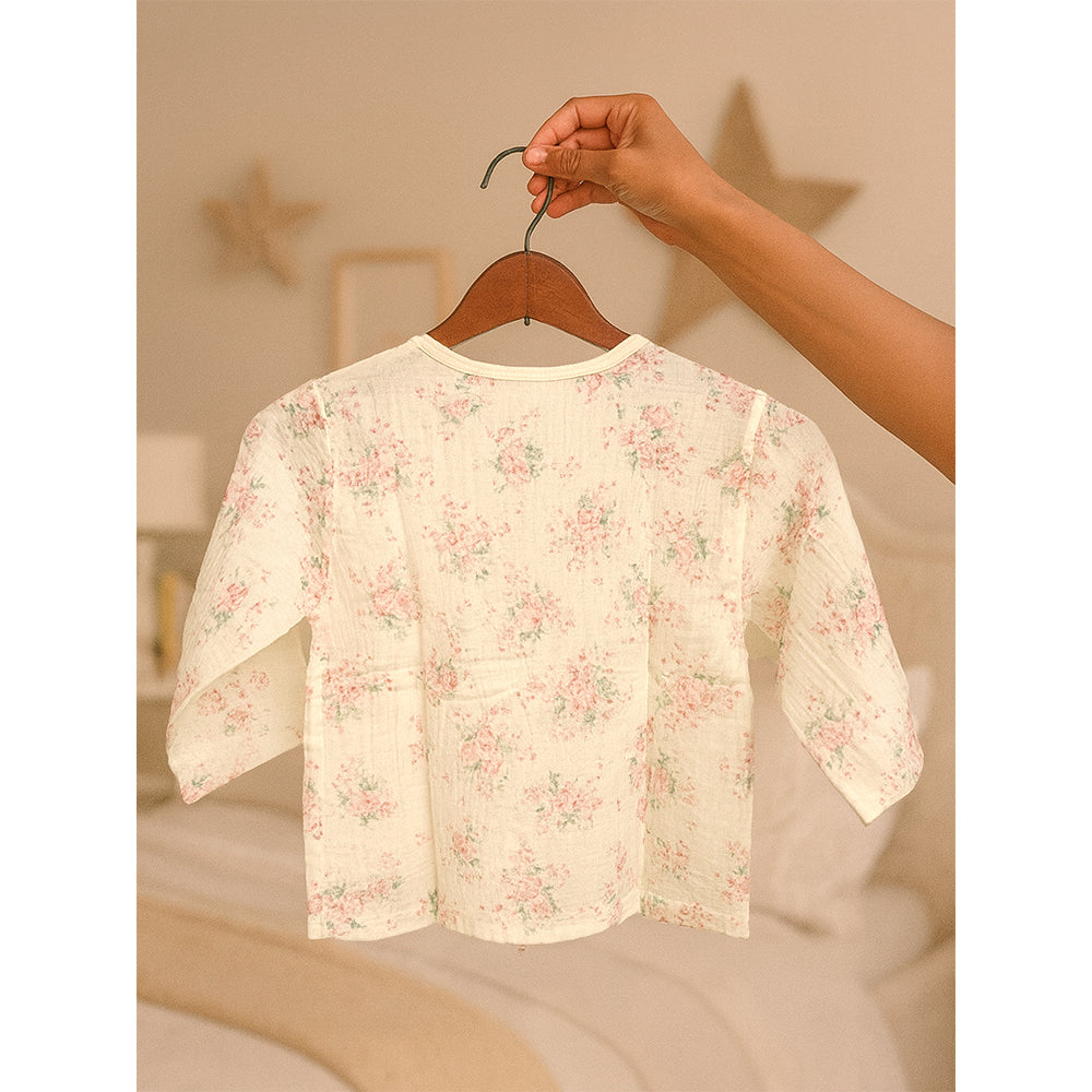 Pink Florals ,Organic Crushed soft Muslin Cotton Kids Nightsuit