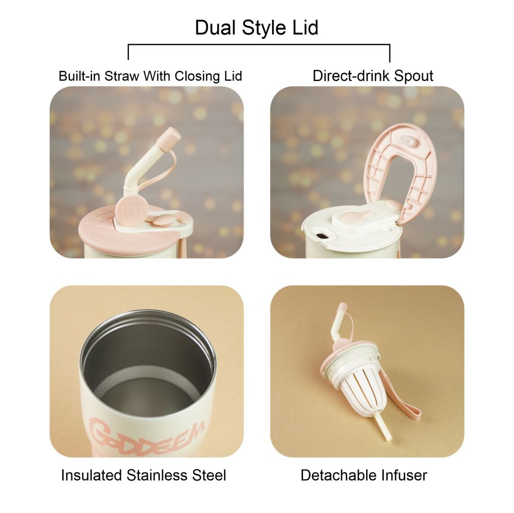 Pink Ombre Shaded Stainless Steel Tumbler Water Bottle, 550ml