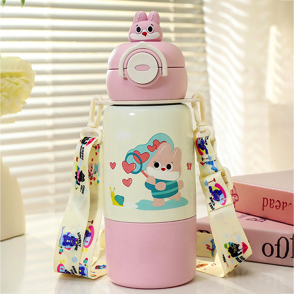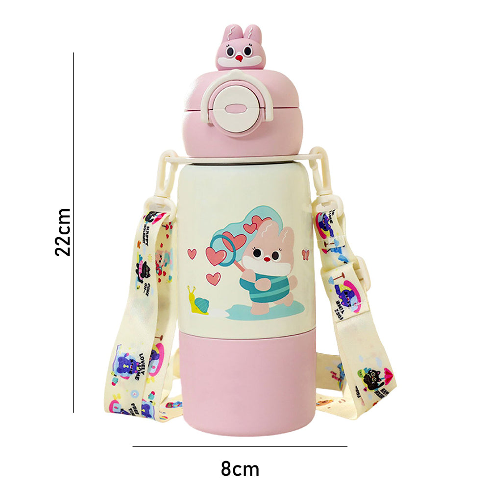 Pink Rabbit Bottomlid Series, Stainless Steel Kids Water Bottle , 480ml