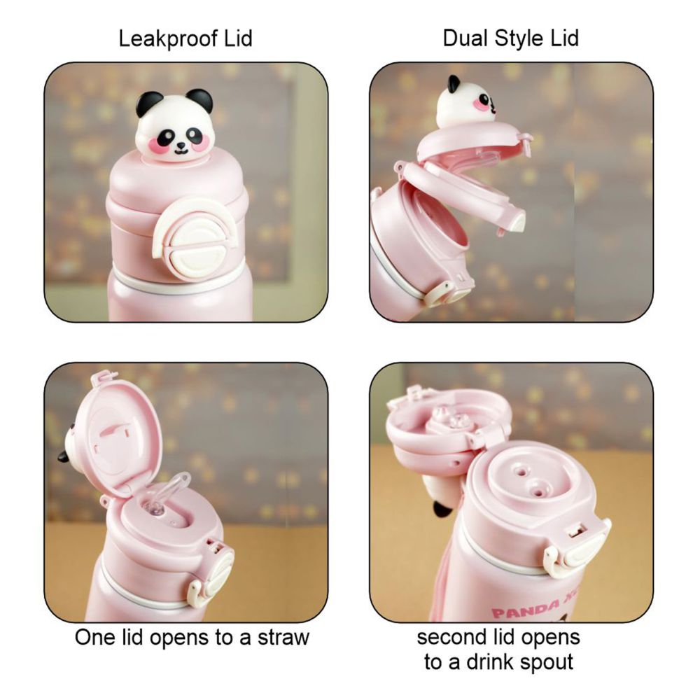 Pink Stripes 3d Panda Stainless Steel Kids Water Bottle, 550ml