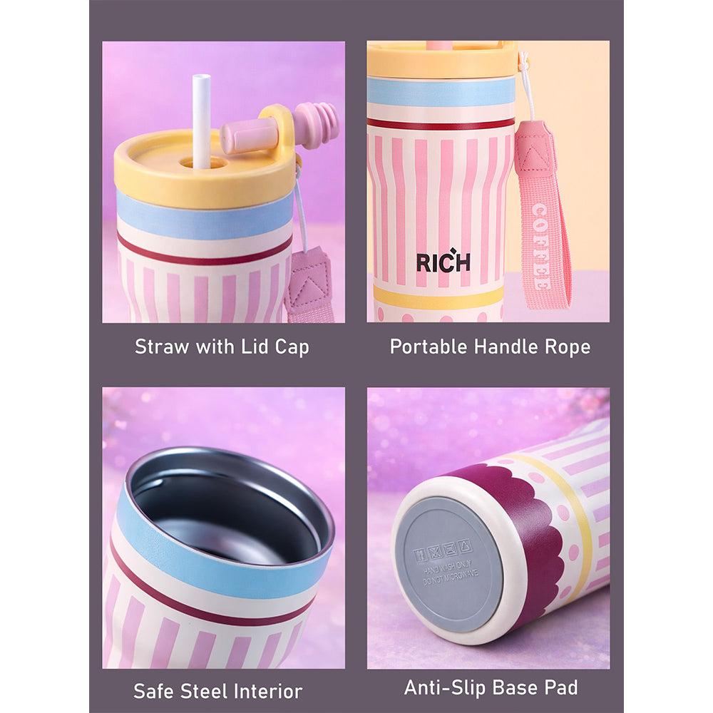 1. Design & Feature: This exclusive bottle is from the Rich series collection. The thick straw makes it really convenient to take in big sips of water with ease . The pastel pink stripe pattern adds a sweet, eye-catching charm to this bottle. A perfect piece for the ones who love all things truly functional and yet quirky.