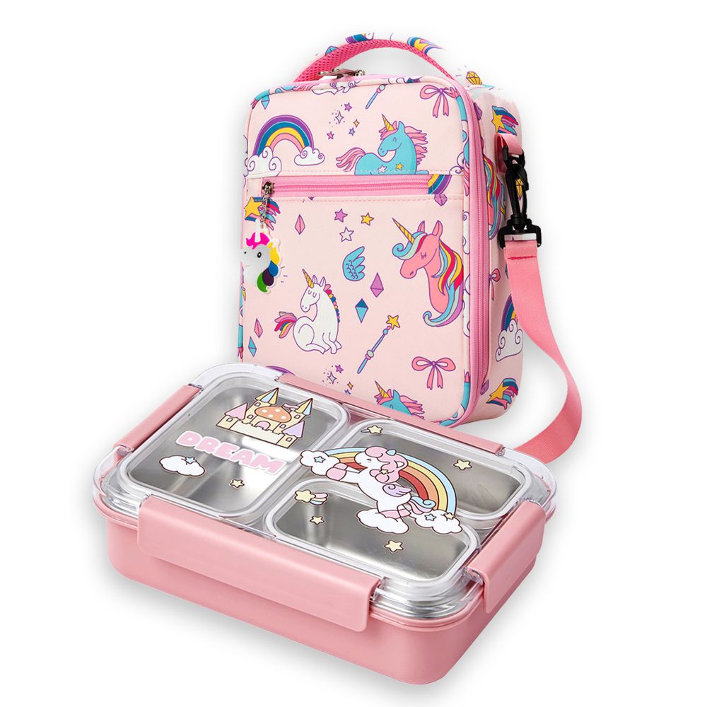 Princess Magic stainless Steel Kids Tiffin/ Lunch Box with matching Pink Lunch Bag