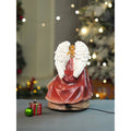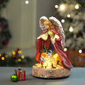 1. Musical , Rotating and Lit christmas nativity set with Holy Family: A beautifully sculpted angel in a flowing red robe, standing protectively over a serene miniature set up of Holy Family. The piece lights up, rotates with soothing christmas music. It plays the soothing christmas song as the centre stage rotates with lights bringing in complete surreal atmosphere. Features a nativity scene with the holy family , beautifully lit with warm LEDs.