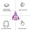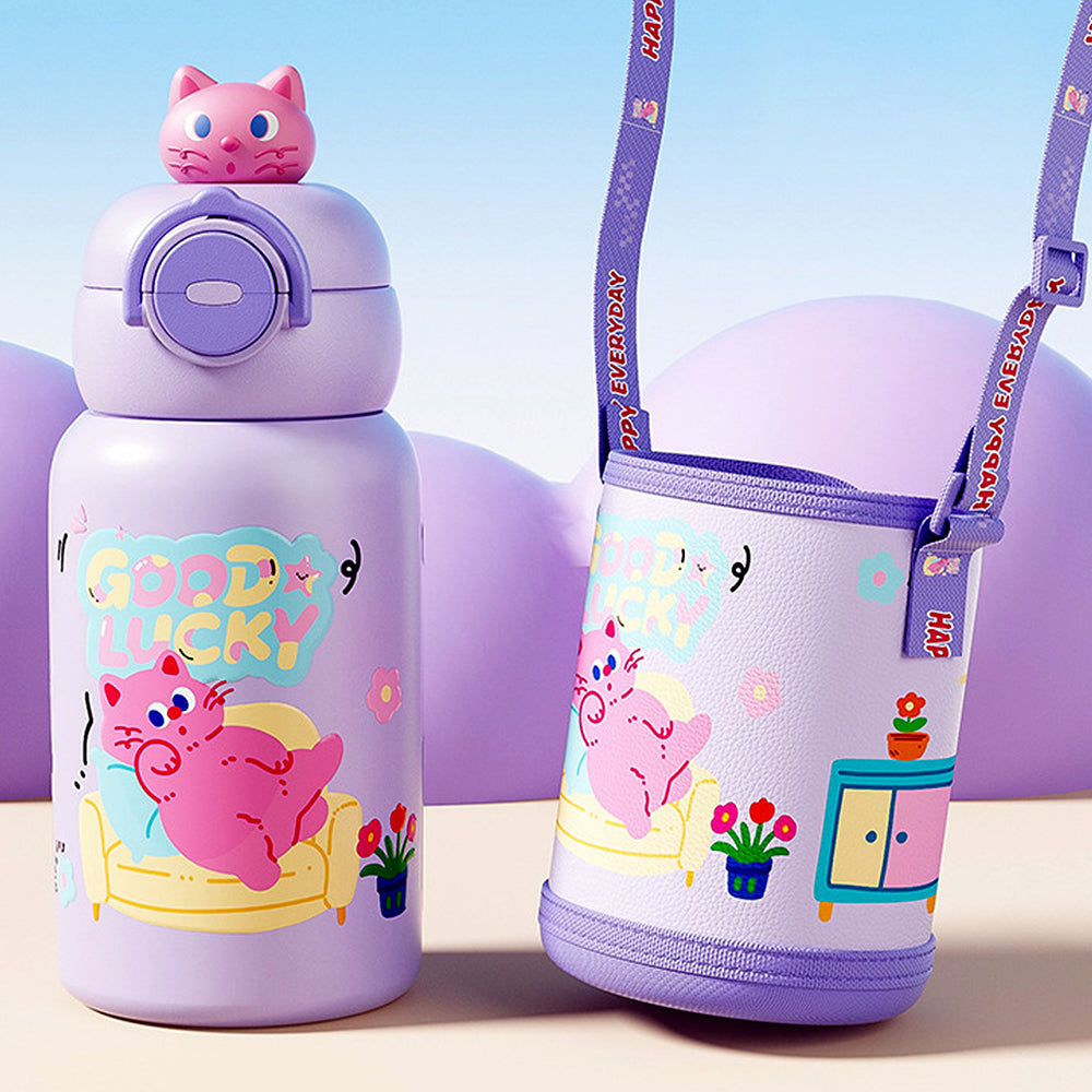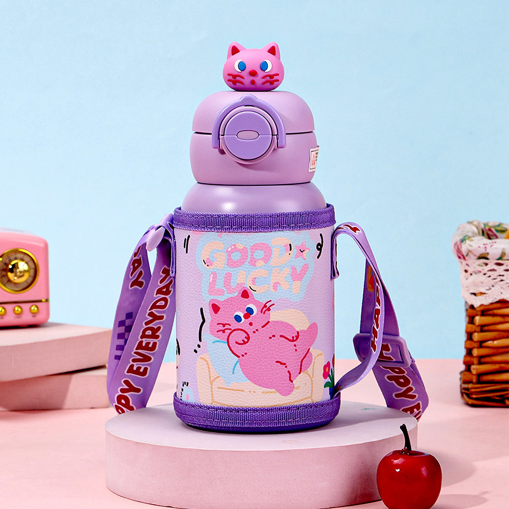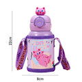 Purple Cat 3d Face Lid with Matching Cover Stainless Steel Water Bottle for Kids,550 ml