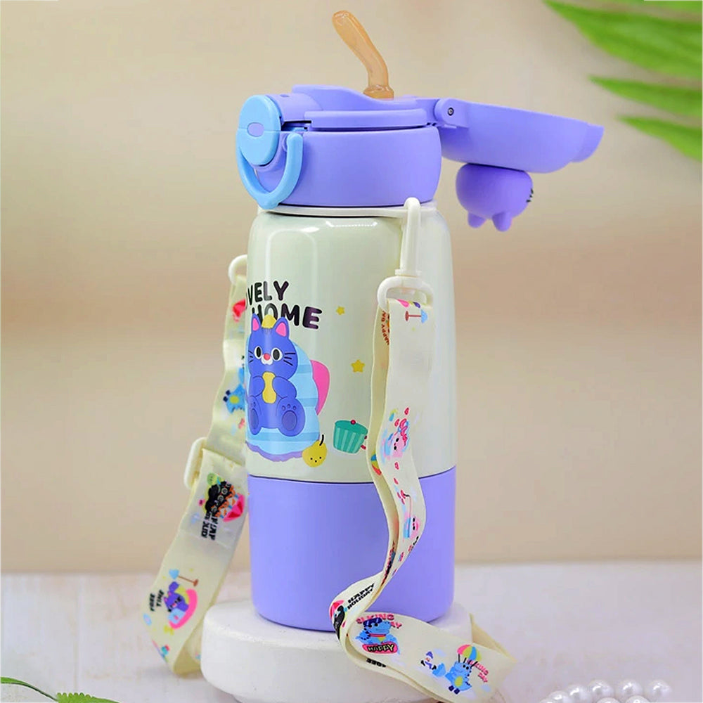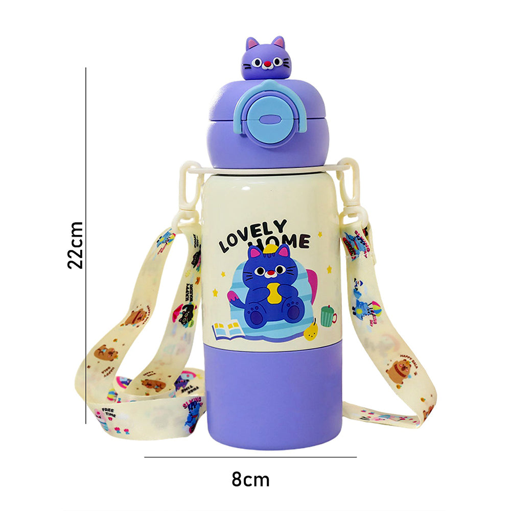 Purple Cat Bottomlid Series, Stainless Steel Kids Water Bottle , 480ml