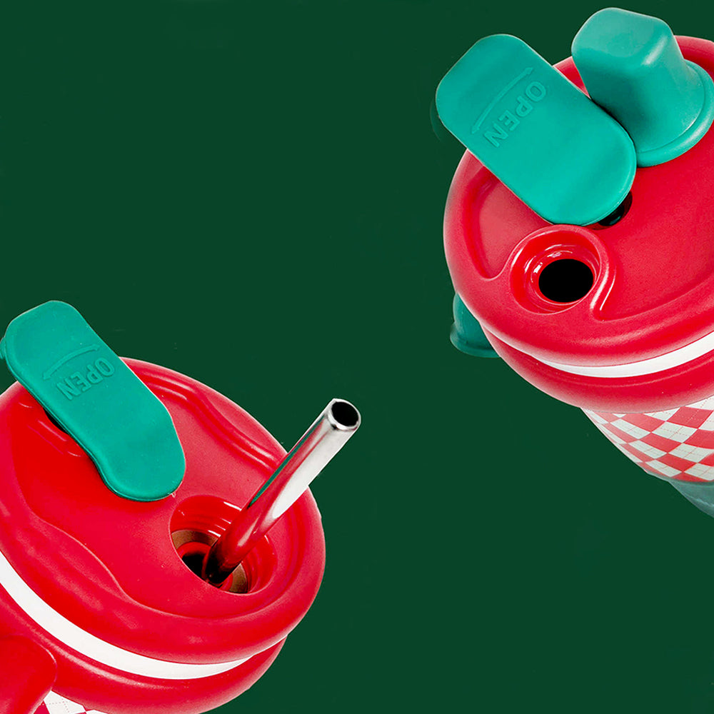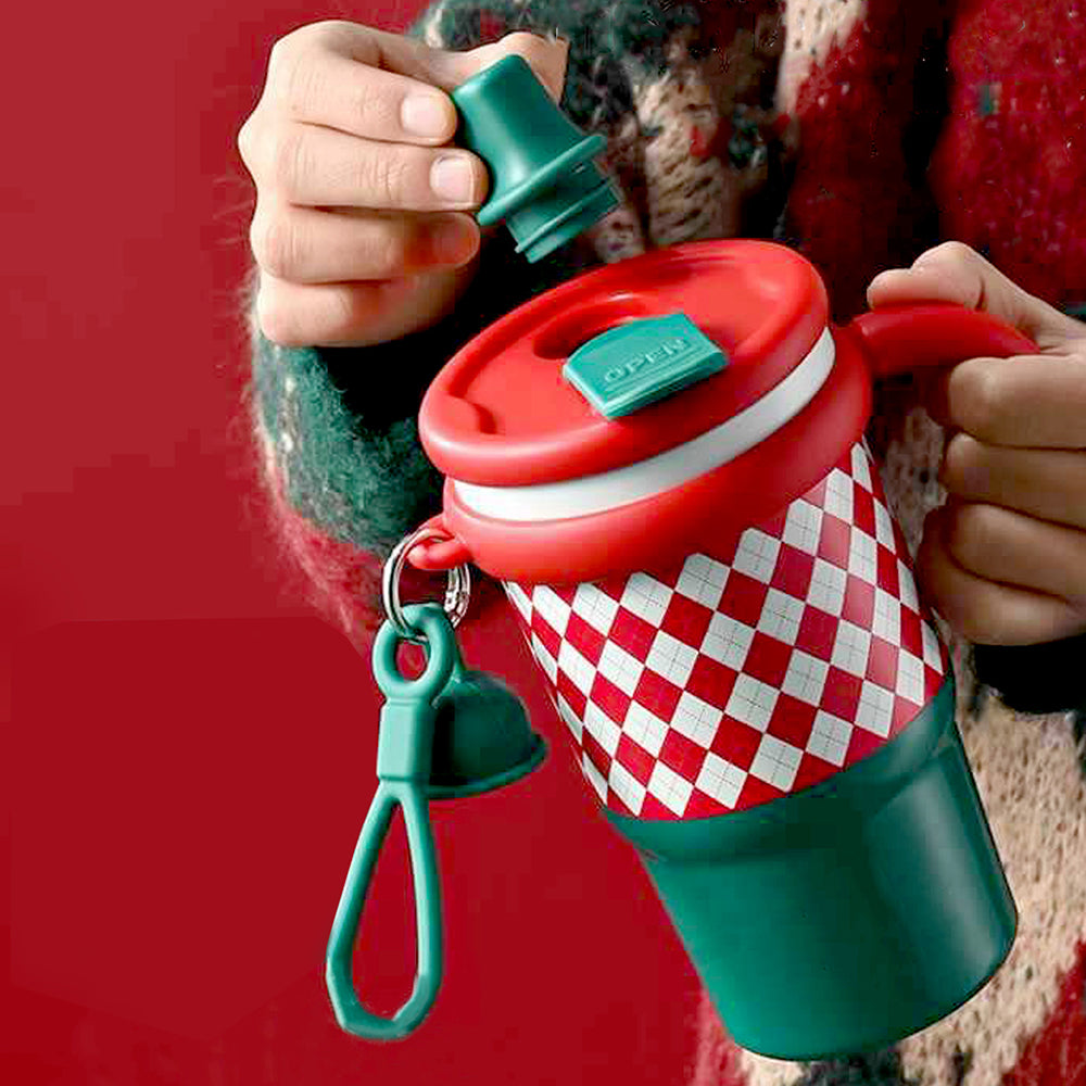 Red Checks Stainless Steel Water and Coffee Tumbler for Kids and Adults, 600ml with a free cleaning brush