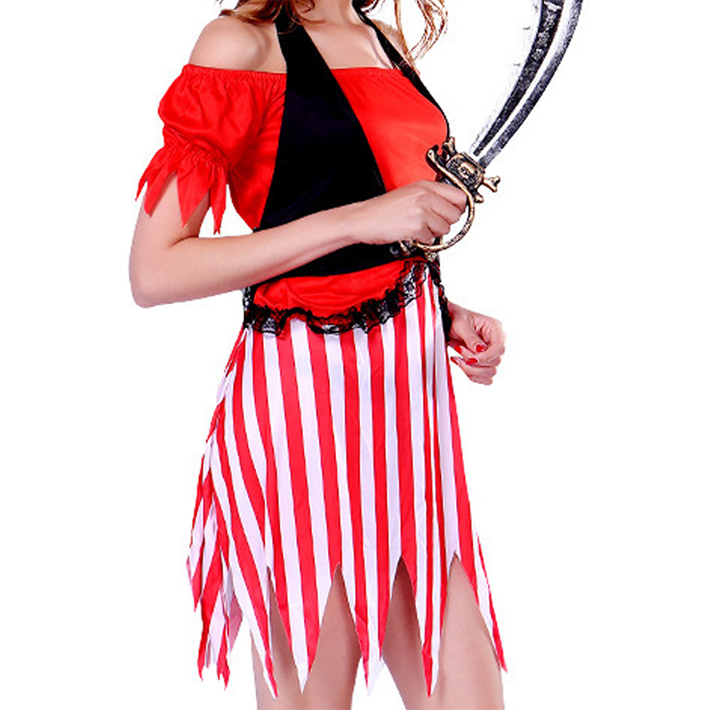 Red dress Pirate Adult Halloween Costume Fancy Dress Up