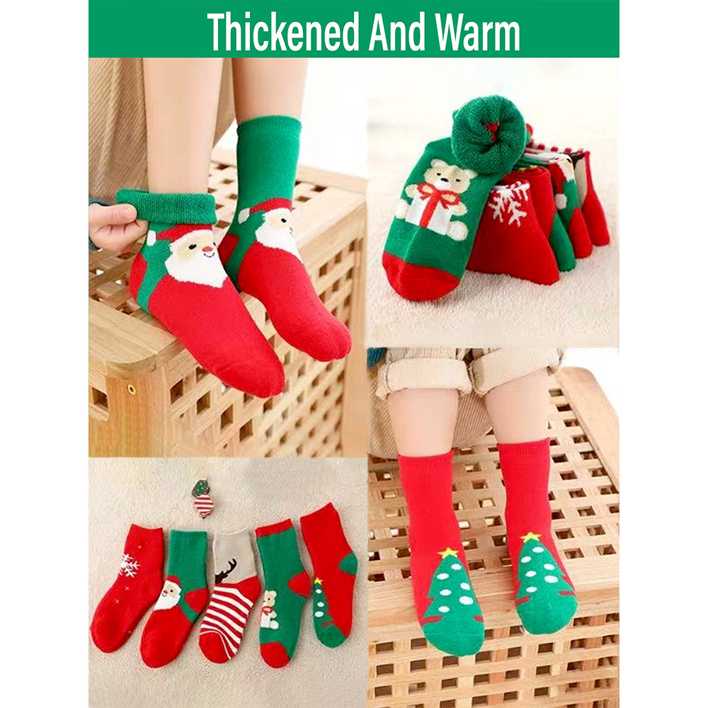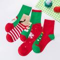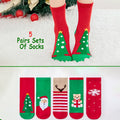 Red & Green Christmas Ankle Length Socks For Kids-Set Of 5 Pcs