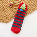 Red & Green Stripes -Xmas Tree Theme Woolen Christmas Socks For Kids