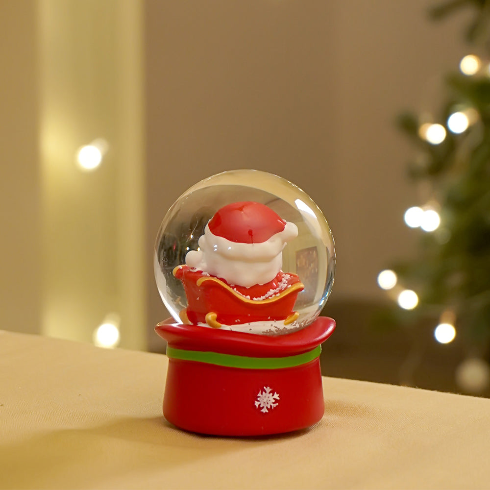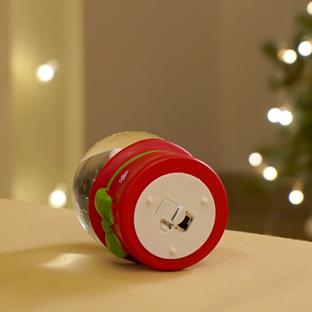 2. Attractive Design: Inside the clear dome is a cute Santa with a bell, while the festive red base decorated with a green bow and snowflake accents adds a delightful Christmas touch. The compact, colourful design makes it a standout piece in any décor arrangement.