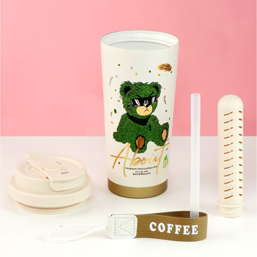 Shiny Green Ted Stainless Steel premium Insulated Detox Infuser Bottle with Tea and Fruit Infuser attachment, 520ml