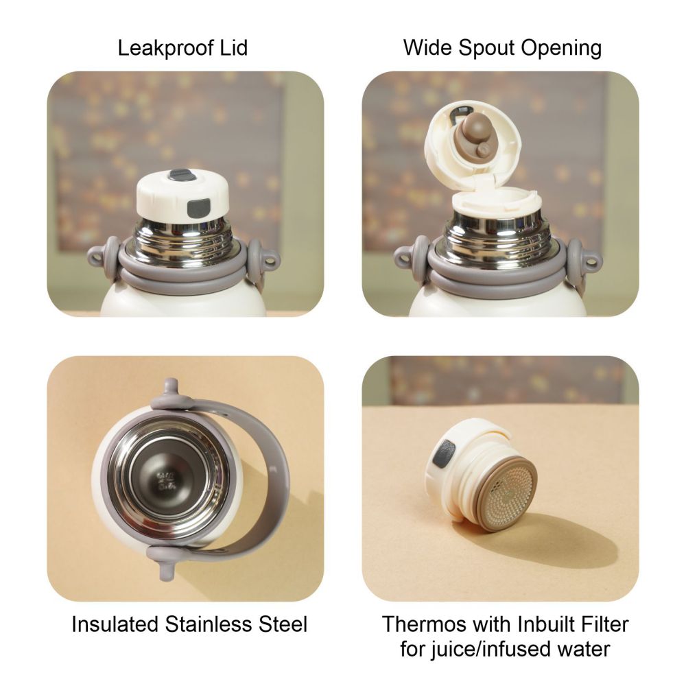 2. Premium Stainless Steel: The double wall insulation in premium stainless steel keeps hot drinks hot for 3 hours and cold for upto 6hours, ensuring freshness and taste.