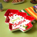 1. Luxury Range, Tree shape Serving platter: A beautifully designed ceramic platter in the shape of a Christmas tree, featuring a raised “Merry Christmas” design with holly and festive detailing.
