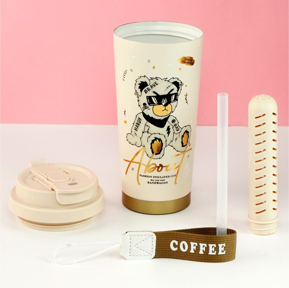 White Ted Stainless Steel premium Insulated Detox Infuser Bottle with Tea and Fruit Infuser attachment, 520ml